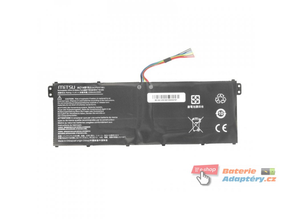 Part. number: AC14B13J, AC14B18J, AC14B18K, AC14B3K, 4ICP5/57/80, KT.0040G.004, KT0030G.004, AC14B13K Vhodná pro: Acer Aspire ES1-511, Acer Aspire V5-122P, Acer Chromebook 13 C810, Acer Aspire ES1-512, Acer Travelmate X349, Acer Travelmate X359, Gateway NE513, Acer Aspire E3-111, Acer Aspire E3-112, Acer Aspire E3-112M, Acer Aspire V3-111, Acer Aspire V3-111P, Acer Aspire V5-122, Acer Aspire V5-132, Acer Aspire V5-132P, Acer Chromebook 11 CB3-111, Acer Chromebook 11 CB3-111-C8UB, Acer Chromebook 13 CB5-311, Gateway NE511, Gateway NE512, Acer Spin 3 SP315-51, Acer Spin 5 SP513-51, Acer Chromebook 15 C910-54M1, Acer Chromebook 15 C910-C37P, Acer Chromebook 15 C910-C453, Acer Chromebook 11 CB3-111-C670, Acer Spin 1 SP113-31, Acer Spin 1 SP113-31-P0ZN, Acer Spin 5 SP513, Acer Aspire 3 A315-55G, Acer Aspire 3 A315-55G-303W, Acer Aspire 3 A315-55G-3046, Acer Aspire 3 A315-55G-317H, Acer Aspire 3 A315-55G-318X, Acer Aspire 3 A315-55G-31GJ, Acer Aspire 3 A315-55G-31HA, Acer Aspire 3 A315-55G-32G8, Acer Aspire 3 A315-55G-33B7, Acer Aspire 3 A315-55G-33GJ, Acer Aspire 3 A315-55G-33QZ, Acer Aspire 3 A315-55G-344A, Acer Aspire 3 A315-55G-34AV, Acer Aspire 3 A315-55G-34G1, Acer Aspire 3 A315-55G-34QS, Acer Aspire 3 A315-55G-34UB, Acer Aspire 3 A315-55G-34XP, Acer Aspire 3 A315-55G-3538, Acer Aspire 3 A315-55G-35SP, Acer Aspire 3 A315-55G-35V5, Acer Aspire 3 A315-55G-37MU, Acer Aspire 3 A315-55G-37QB, Acer Aspire 3 A315-55G-37W5, Acer Aspire 3 A315-55G-3830, Acer Aspire 3 A315-55G-388L, Acer Aspire 3 A315-55G-3895, Acer Aspire 3 A315-55G-38SA, Acer Aspire 3 A315-55G-3983, Acer Aspire 3 A315-55G-399C, Acer Aspire 3 A315-55G-39EY, Acer Aspire 3 A315-55G-39GT, Acer Aspire 3 A315-55G-39KH, Acer Aspire 3 A315-55G-39VG, Acer Aspire 3 A315-55G-39X8, Acer Aspire 3 A315-55G-500G, Acer Aspire 3 A315-55G-503L, Acer Aspire 3 A315-55G-505H, Acer Aspire 3 A315-55G-506Q, Acer Aspire 3 A315-55G-5084, Acer Aspire 3 A315-55G-508V, Acer Aspire 3 A315-55G-50GZ, Acer Aspire 3 A315-55G-513L, Acer Aspire 3 A315-55G-517D, Acer Aspire 3 A315-55G-51JH, Acer Aspire 3 A315-55G-51KL, Acer Aspire 3 A315-55G-51PG, Acer Aspire 3 A315-55G-51PM, Acer Aspire 3 A315-55G-51S3, Acer Aspire 3 A315-55G-51S5, Acer Aspire 3 A315-55G-51W1, Acer Aspire 3 A315-55G-51WR, Acer Aspire 3 A315-55G-525Q, Acer Aspire 3 A315-55G-5296, Acer Aspire 3 A315-55G-52H0, Acer Aspire 3 A315-55G-52KU, Acer Aspire 3 A315-55G-52M9, Acer Aspire 3 A315-55G-52VZ, Acer Aspire 3 A315-55G-52YJ, Acer Aspire 3 A315-55G-53EM, Acer Aspire 3 A315-55G-541P, Acer Aspire 3 A315-55G-541R, Acer Aspire 3 A315-55G-549B, Acer Aspire 3 A315-55G-54BN, Acer Aspire 3 A315-55G-54V9, Acer Aspire 3 A315-55G-54VK, Acer Aspire 3 A315-55G-550A, Acer Aspire 3 A315-55G-550G, Acer Aspire 3 A315-55G-5512, Acer Aspire 3 A315-55G-55P4, Acer Aspire 3 A315-55G-55VH, Acer Aspire 3 A315-55G-5646, Acer Aspire 3 A315-55G-5654, Acer Aspire 3 A315-55G-565J, Acer Aspire 3 A315-55G-5672, Acer Aspire 3 A315-55G-56F9, Acer Aspire 3 A315-55G-56GP, Acer Aspire 3 A315-55G-56K3, Acer Aspire 3 A315-55G-56PW, Acer Aspire 3 A315-55G-57B4, Acer Aspire 3 A315-55G-57HL, Acer Aspire 3 A315-55G-57M4, Acer Aspire 3 A315-55G-57MF, Acer Aspire 3 A315-55G-57WH, Acer Aspire 3 A315-55G-57Y3, Acer Aspire 3 A315-55G-581M, Acer Aspire 3 A315-55G-584K, Acer Aspire 3 A315-55G-5850, Acer Aspire 3 A315-55G-5851, Acer Aspire 3 A315-55G-58BR, Acer Aspire 3 A315-55G-58EA, Acer Aspire 3 A315-55G-58QC, Acer Aspire 3 A315-55G-5917, Acer Aspire 3 A315-55G-59AE, Acer Aspire 3 A315-55G-59D0, Acer Aspire 3 A315-55G-59DO, Acer Aspire 3 A315-55G-59EJ, Acer Aspire 3 A315-55G-59VW, Acer Aspire 3 A315-55G-59XE, Acer Aspire 3 A315-55G-59ZU, Acer Aspire 3 A315-55G-7074, Acer Aspire 3 A315-55G-7075, Acer Aspire 3 A315-55G-71BP, Acer Aspire 3 A315-55G-71MP, Acer Aspire 3 A315-55G-71QV, Acer Aspire 3 A315-55G-71X0, Acer Aspire 3 A315-55G-71X3, Acer Aspire 3 A315-55G-722Z, Acer Aspire 3 A315-55G-72CJ, Acer Aspire 3 A315-55G-731K, Acer Aspire 3 A315-55G-73N2, Acer Aspire 3 A315-55G-73N7, Acer Aspire 3 A315-55G-7484, Acer Aspire 3 A315-55G-74LX, Acer Aspire 3 A315-55G-74RR, Acer Aspire 3 A315-55G-754D, Acer Aspire 3 A315-55G-7570, Acer Aspire 3 A315-55G-75M9, Acer Aspire 3 A315-55G-75N3, Acer Aspire 3 A315-55G-75SM, Acer Aspire 3 A315-55G-765G, Acer Aspire 3 A315-55G-7698, Acer Aspire 3 A315-55G-76AB, Acer Aspire 3 A315-55G-76BP, Acer Aspire 3 A315-55G-76C4, Acer Aspire 3 A315-55G-76HK, Acer Aspire 3 A315-55G-76LY, Acer Aspire 3 A315-55G-76YB, Acer Aspire 3 A315-55G-77K7, Acer Aspire 3 A315-55G-78A3, Acer Aspire 3 A315-55G-79LN, Acer Aspire 3 A315-55G-79XZ, Acer Aspire 3 A315-55KG, Acer Aspire 3 A315-55KG-30EZ, Acer Aspire 3 A315-55KG-317M, Acer Aspire 3 A315-55KG-319V, Acer Aspire 3 A315-55KG-31E4, Acer Aspire 3 A315-55KG-323P, Acer Aspire 3 A315-55KG-32KS, Acer Aspire 3 A315-55KG-32NA, Acer Aspire 3 A315-55KG-32PK, Acer Aspire 3 A315-55KG-33CY, Acer Aspire 3 A315-55KG-34J2, Acer Aspire 3 A315-55KG-34J6, Acer Aspire 3 A315-55KG-34W9, Acer Aspire 3 A315-55KG-351C, Acer Aspire 3 A315-55KG-35FC, Acer Aspire 3 A315-55KG-367X, Acer Aspire 3 A315-55KG-36RD, Acer Aspire 3 A315-55KG-36WE, Acer Aspire 3 A315-55KG-37ED, Acer Aspire 3 A315-55KG-389C, Acer Aspire 3 A315-55KG-38C9, Acer Aspire 3 E 11 ES1-111, Acer Aspire 3 E 11 ES1-111-C1MX, Acer Aspire 3 E 11 ES1-111-C56A, Acer Aspire 3 E 11 ES1-111M, Acer Aspire 3 E 11 ES1-111M-C0FQ, Acer Aspire 3 E 11 ES1-111M-C3CP, Acer Aspire 3 E 11 ES1-111M-C40S, Acer Aspire 3 E 11 ES1-111M-C7DE, Acer Aspire 3 E 11 ES1-111M-C9LS, Acer Aspire 3 E 11 ES1-111M-C9VZ, Acer Aspire 3 E 11 ES1-111M-P156, Acer Aspire 3 E 11 ES1-111M-P2YU, Acer Aspire 3 E 11 ES1-131, Acer Aspire 3 E 11 ES1-131-C4ZS, Acer Aspire 3 E 11 ES1-131-C595, Acer Aspire 3 E 11 ES1-131-C7R8, Acer Aspire 3 E 11 ES1-131-C8RL, Acer Aspire 3 E 11 ES1-131-P5CX, Acer Aspire 3 E 11 ES1-131-P7WN, Acer Aspire 3 E11 ES1-111, Acer Aspire 3 E11 ES1-111M, Acer Aspire 3 E11 ES1-131, Acer Aspire 3 E15 ES1-512, Acer Aspire 3 E15 ES1-520, Acer Aspire 3 ES 13 ES1-331, Acer Aspire 3 ES