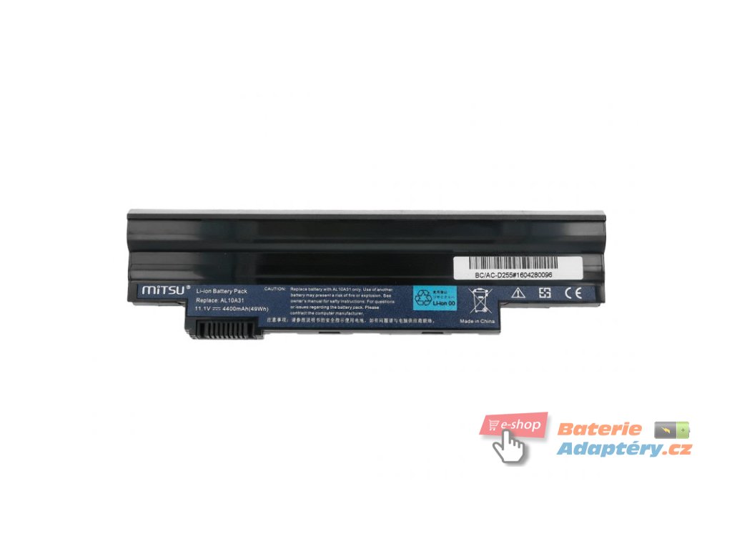 Nová, náhradní baterie značky Mitsu určená pro výbrané typy notebooků Acer. Jedná se o vhodnou alternativu za Váši nefunkční, originální baterii. Baterie Mitsu jsou určeny pro dané typy notebooku a plně nahrazují originálni baterie. Spolehlivost Mitsu Battery dokládají získané certifikáty: CE, FCC, ROHS, které zaručují vysokou kvalitu a mizivou poruchovost. Baterie je vybavená zabezpečením proti hlubokému vybití a přebití. Part. number: BT.00603.029, BT.00605.014, BT.00607.008, LIP6232ACPC, BT.00604.015, CONIS71, 4UR18650F-2-WST-3, 934C2220F, 934T2220F, BT.00803.022, BT.00804.019, BT.00805.010, BT.00807.013, TM-2007, LC.BTP00.006, TM00772, TM00742, CONIS72, AL10B31, AL10G31, AL10BW, AL10A31, 23.TCZV1.004, AK.003BT.071, AK.006BT.074, AK.008BT.054, BT.00603.12, BT.00807.016, C.BTP00.128, C.BTP00.12L, ICR17/65L, LC.BTP00.129 Vhodná pro: Acer Aspire One 522, Acer Aspire One 722, Acer Aspire One D255, Acer Aspire One D257, Acer Aspire One D260, Acer Aspire One D270, Acer Aspire One E100, Acer Aspire One Happy, Acer Aspire One AO522, Acer Aspire One AO722, Acer Aspire One AO722-BZ197, Acer Aspire One AO722-BZ454, Acer Aspire One AO722-BZ480, Acer Aspire One AO722-BZ608, Acer Aspire One AO722-BZ699, Acer Aspire One AO722-BZ816, Acer Aspire One AO722-BZ848, Acer Aspire One AOD255, Acer Aspire One AOD255-1134, Acer Aspire One AOD255-1203, Acer Aspire One AOD255-1549, Acer Aspire One AOD255-1625, Acer Aspire One AOD255-2331, Acer Aspire One AOD255-2333, Acer Aspire One AOD255-2509, Acer Aspire One AOD255-2520, Acer Aspire One AOD255-2981, Acer Aspire One AOD255-A01BB, Acer Aspire One AOD255-A01BK, Acer Aspire One AOD255-A01BW, Acer Aspire One AOD255E, Acer Aspire One AOD257, Acer Aspire One AOD260, Acer Aspire One AOD260-2028, Acer Aspire One AOD260-2203, Acer Aspire One AOD260-2207, Acer Aspire One AOD260-2344, Acer Aspire One AOD260-2365, Acer Aspire One AOD260-23797, Acer Aspire One AOD260-2380, Acer Aspire One AOD260-2440, Acer Aspire One AOD260-2455, Acer Aspire One AOD260-2571, Acer Aspire One AOD260-2576, Acer Aspire One AOD260-2680, Acer Aspire One AOD260-2919, Acer Aspire One AOD260-2BKK, Acer Aspire One AOD260-2BP, Acer Aspire One AOD260-N51BK, Acer Aspire One AOD260-N51BKF, Acer Aspire One AOD260-N51BM, Acer Aspire One AOD260-N51BP, Acer Aspire One AOD260-N51BS, Acer Aspire One AOD260-N51BSF, Acer Aspire One AOD270, Acer Aspire One AOD522, Acer Aspire One AOD722, Acer Aspire One AOE100, Acer Aspire One D255-1134, Acer Aspire One D255-1203, Acer Aspire One D255-1268, Acer Aspire One D255-1549, Acer Aspire One D255-1625, Acer Aspire One D255-2107, Acer Aspire One D255-2136, Acer Aspire One D255-2184, Acer Aspire One D255-2256, Acer Aspire One D255-2301, Acer Aspire One D255-2331, Acer Aspire One D255-2333, Acer Aspire One D255-2509, Acer Aspire One D255-2520, Acer Aspire One D255-2532, Acer Aspire One D255-2583, Acer Aspire One D255-2640, Acer Aspire One D255-2670, Acer Aspire One D255-2691, Acer Aspire One D255-2795, Acer Aspire One D255-2929, Acer Aspire One D255-2934, Acer Aspire One D255-2981, Acer Aspire One D255-2BQ, Acer Aspire One D255-N55DQ, Acer Aspire One D255E, Acer Aspire One D257E, Acer Aspire One D260-2028, Acer Aspire One D260-2097, Acer Aspire One D260-2203, Acer Aspire One D260-2207, Acer Aspire One D260-2344, Acer Aspire One D260-2365, Acer Aspire One D260-23797, Acer Aspire One D260-2380, Acer Aspire One D260-2440, Acer Aspire One D260-2455, Acer Aspire One D260-2571, Acer Aspire One D260-2576, Acer Aspire One D260-2680, Acer Aspire One D260-2919, Acer Aspire One D260-2BKK, Acer Aspire One D260-2BP, Acer Aspire One D260-2BQGKK, Acer Aspire One D260-2BQGSS, Acer Aspire One D260-2BQKK, Acer Aspire One D260-2BQPU, Acer Aspire One D260-2BQSS, Acer Aspire One D260-2DGKK, Acer Aspire One D260-2DQKK, Acer Aspire One D260-2DQPU, Acer Aspire One D260-2DQSS, Acer Aspire One D260-2DQUU, Acer Aspire One D260-N51BK, Acer Aspire One D260-N51BKF, Acer Aspire One D260-N51BM, Acer Aspire One D260-N51BP, Acer Aspire One D260-N51BS, Acer Aspire One D260-N51BSF, Acer Aspire One D260E, Acer Aspire One HAPPY2Doplňkové parametry