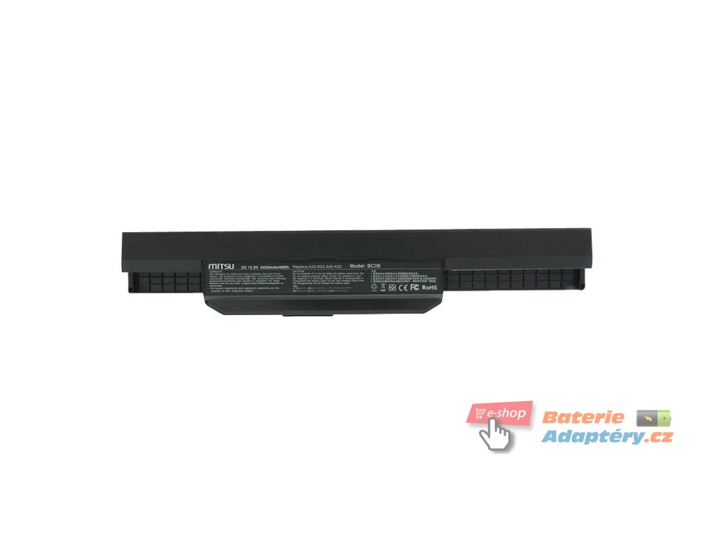 Nová, náhradní baterie značky Mitsu určená pro výbrané typy notebooků Asus. Jedná se o vhodnou alternativu za Váši nefunkční, originální baterii. Baterie Mitsu jsou určeny pro dané typy notebooku a plně nahrazují originálni baterie. Spolehlivost Mitsu Battery dokládají získané certifikáty: CE, FCC, ROHS, které zaručují vysokou kvalitu a mizivou poruchovost. Baterie je vybavená zabezpečením proti hlubokému vybití a přebití. Part. number: A31-K53, A32-K53, A41-K53, A42-K53, A43EI241SV-SL Vhodná pro: Asus X53, Asus A43, Asus A43B, Asus A43BR, Asus A43BY, Asus A43E, Asus A43F, Asus A43J, Asus A43JA, Asus A43JB, Asus A43JC, Asus A43JE, Asus A43JF, Asus A43JG, Asus A43JH, Asus A43JN, Asus A43JP, Asus A43JQ, Asus A43JR, Asus A43JU, Asus A43JV, Asus A43S, Asus A43SA, Asus A43SD, Asus A43SJ, Asus A43SV, Asus A43SM, Asus A43T, Asus A43TA, Asus A43TK, Asus A43U, Asus A53, Asus A53B, Asus A53BR, Asus A53BY, Asus A53E, Asus A53F, Asus A53J, Asus A53JA, Asus A53JB, Asus A53JC, Asus A53JE, Asus A53JH, Asus A53JQ, Asus A53JR, Asus A53JT, Asus A53JU, Asus A53S, Asus A53SC, Asus A53SD, Asus A53SJ, Asus A53SK, Asus A53SM, Asus A53SV, Asus A53T, Asus A53TA, Asus A53TK, Asus A53U, Asus A53Z, Asus A54, Asus A54C, Asus A54H, Asus A54HY, Asus A54HO, Asus A54HR, Asus A54L, Asus A54LY, Asus A83, Asus A83B, Asus A83BR, Asus A83BY, Asus A83E, Asus A83S, Asus A83SA, Asus A83SD, Asus A83SJ, Asus A83SM, Asus A83SV, Asus A83T, Asus A83TA, Asus A83U, Asus K43, Asus K43B, Asus K43BR, Asus K43BY, Asus K43E, Asus K43F, Asus K43J, Asus K43JC, Asus K43JM, Asus K43JS, Asus K43JY, Asus K43S, Asus K43SA, Asus K43SC, Asus K43SD, Asus K43SE, Asus K43SJ, Asus K43SM, Asus K43SR, Asus K43SV, Asus K43SY, Asus K43T, Asus K43TA, Asus K43TK, Asus K43U, Asus K53, Asus K53B, Asus K53BY, Asus K53E, Asus K53F, Asus K53J, Asus K53JA, Asus K53JC, Asus K53JE, Asus K53JF, Asus K53JG, Asus K53JN, Asus K53JS, Asus K53JT, Asus K53S, Asus K53SA, Asus K53SC, Asus K53SD, Asus K53SE, Asus K53SJ, Asus K53SN, Asus K53SV, Asus K53T, Asus K53TA, Asus K53U, Asus K54, Asus K54C, Asus K54H, Asus K54HY, Asus K54HO, Asus K54HR, Asus K54L, Asus K54LY, Asus K84, Asus K84C, Asus K84H, Asus K84HY, Asus K84HO, Asus K84HR, Asus K84L, Asus K84LY, Asus P53, Asus P53E, Asus P53F, Asus P53J, Asus P53JC, Asus P53S, Asus P53SJ, Asus X43, Asus X43B, Asus X43BR, Asus X43BY, Asus X43E, Asus X43J, Asus X43JE, Asus X43JF, Asus X43JR, Asus X43JX, Asus X43S, Asus X43SA, Asus X43SD, Asus X43SJ, Asus X43SM, Asus X43SR, Asus X43SV, Asus X43T, Asus X43TA, Asus X43U, Asus X43V, Asus X44, Asus X44C, Asus X44H, Asus X44HY, Asus X44HO, Asus X44HR, Asus X44L, Asus X44LY, Asus X53B, Asus X53BR, Asus X53BY, Asus X53E, Asus X53S, Asus X53SD, Asus X53SJ, Asus X53SV, Asus X53T, Asus X53TA, Asus X53TK, Asus X53U, Asus X53Z, Asus X54, Asus X54C, Asus X54F, Asus X54H, Asus X54HB, Asus X54HY, Asus X54K, Asus X54L, Asus X54LB, Asus X54LY, Asus X84, Asus X84C, Asus X84H, Asus X84HY, Asus X84HO, Asus X84L, Asus X84LY, Asus X84S, Asus X84SL, Asus A84SJ, Asus X5PE, Asus X5PSJ, Asus X84HR, Asus X54HR, Asus A83TK, Asus K53BR, Asus K53SK, Asus K53SM, Asus K53TK, Asus K53Z, Asus P43E, Asus P43SJ, Asus PRO4IJF, Asus PRO4ISV, Asus PRO4JE, Asus PRO4JSJ, Asus PRO4KSL, Asus PRO5NBR, Asus PRO5NBY, Asus PRO5NE, Asus PRO5NSC, Asus PRO5NSD, Asus PRO5NSJ, Asus PRO5NSK, Asus PRO5NSM, Asus PRO5NSV, Asus PRO5NTA, Asus PRO5NTK, Asus PRO5NU, Asus PRO5NZ, Asus PRO5PE, Asus PRO5PSJ, Asus PRO8GBR, Asus PRO8GBY, Asus PRO8GE, Asus PRO8GSA, Asus PRO8GSD, Asus PRO8GSJ, Asus PRO8GSM, Asus PRO8GSV, Asus PRO8GTA, Asus PRO8GTK, Asus PRO8GU, Asus X43TK, Asus X4JE, Asus X4JSJ, Asus X53KA, Asus X53KE, Asus X53L, Asus X53Q, Asus X53SA, Asus X53SC, Asus X53SE, Asus X53SG, Asus X53SK, Asus X53SM, Asus X53SR, Asus A43BE, Asus A44H, Asus A44L, Asus A44LY, Asus A53BE, Asus A84, Asus A84E, Asus A84EI, Asus A84S, Asus K43BE, Asus K53SU, Asus K53U-SX071V, Asus K54U, Asus P43, Asus P43EB, Asus P43EI, Asus P43F, Asus P43J, Asus P43JC, Asus P43S, Asus P43SL, Asus P53XI, Asus PRO4I, Asus PRO4IJ, Asus PRO4IS, Asus PRO4J, Asus PRO4JS, Asus PRO4K, Asus PRO4KS, Asus PRO4KV, Asus PRO4KVM, Asus PRO4L, Asus PRO4LE, Asus PRO4LS, Asus PRO4LSM, Asus PRO4LSV, Asus PRO4N, Asus PRO4NA, Asus PRO4NV, Asus PRO4NVC, Asus PRO4P, Asus PRO4PA, Asus PRO4PVD, Asus PRO4Q, Asus PRO4QCA, Asus PRO4QCB, Asus PRO4QCM, Asus PRO5N, Asus PRO5NB, Asus PRO5NS, Asus PRO5NT, Asus PRO5P, Asus PRO5PS, Asus PRO8G, Asus PRO8GB, Asus PRO8GS, Asus PRO8GT, Asus PRO8Q, Asus X43BE, Asus X43EC, Asus X43EE, Asus X44E, Asus X44EI, Asus X4J, Asus X4JS, Asus X53BE, Asus X53BJ, Asus X53K, Asus X53X, Asus X53XC, Asus X53XE, Asus X54U, Asus X54X, Asus X54XB, Asus X54XI, Asus X5P, Asus X5PS, Asus X84E, Asus X84EB, Asus X84EIDoplňkové parametry