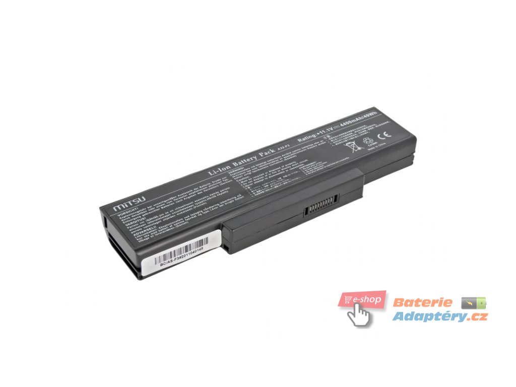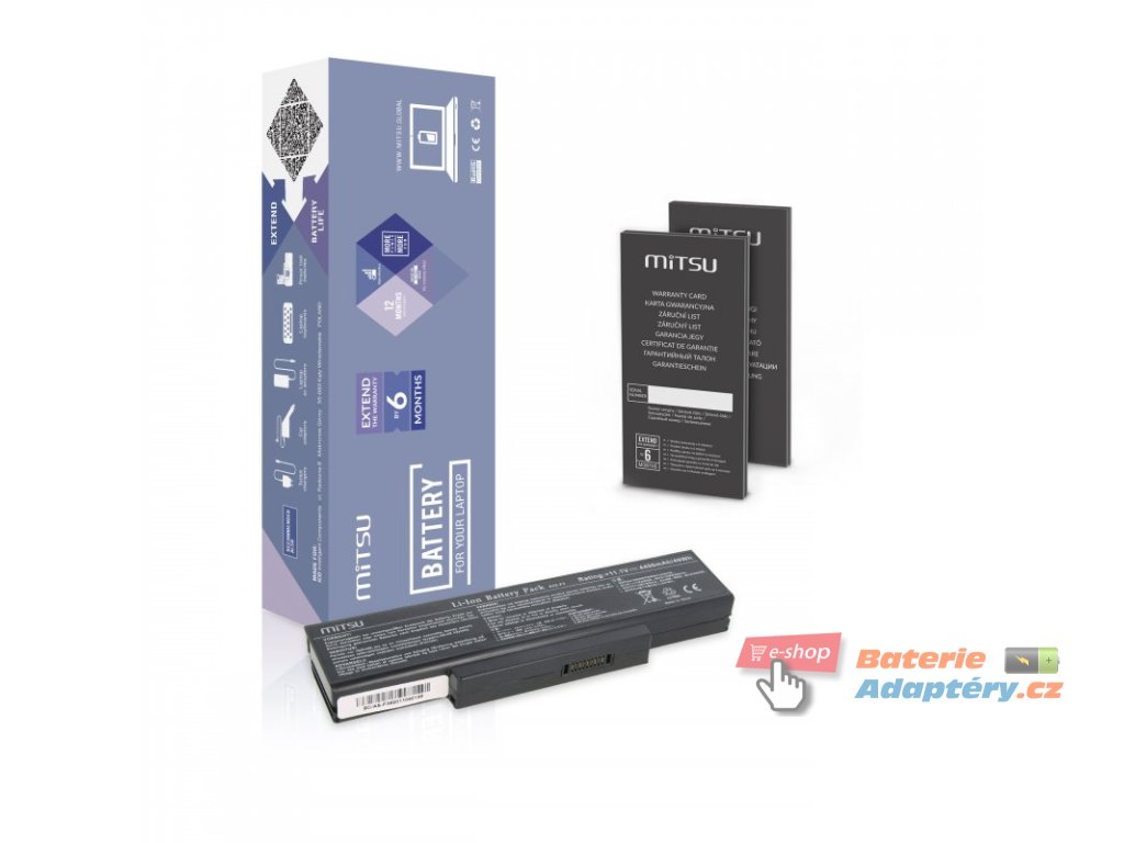 Nová, náhradní baterie značky Mitsu určená pro výbrané typy notebooků Asus. Jedná se o vhodnou alternativu za Váši nefunkční, originální baterii. Baterie Mitsu jsou určeny pro dané typy notebooku a plně nahrazují originálni baterie. Spolehlivost Mitsu Battery dokládají získané certifikáty: CE, FCC, ROHS, které zaručují vysokou kvalitu a mizivou poruchovost. Baterie je vybavená zabezpečením proti hlubokému vybití a přebití. Part. number: A32-F2, A32-F3, 90-NIA1B1000, 90-NI11B1000, 90-NFY6B1000Z, SQU-528, SQU-503, 906C5040F, 906C5050F, 908C3500F, 916C4230F, 916C-4230F, 916C5110F, 916C5220F, 916C5280F, 2C.201S0.001, CBPIL44, GC020009Y00, GC020009Z00, GC02000AM00, SQU-524, A32-Z94, SQU-511, BTY-M66, A32-Z96, M660NBAT-6, 90-NFV6B1000Z, BTY-M67, 1034T-003, 261750, 261751, 87-M66NS-4C4, 90-NI11B1000Y, 90NITLILD4SU1, 90NITLILG2SU1, 916C4540F, 916C5180F, 916C5190F, 916C5340F, 916C7040F, 957-1034T-003, A32-Z84, A33-F3, A33-Z84, A33-Z94, BATFL91L6, BATSQU511, BATSQU528, BTY-66, BTY-M61, BTY-M65, BTY-M68, BTYM66, CBPIL48, CBPIL72, GC02000A000, GC02000AK00, GC02000AN00, GC02000AU00, GC02000AV00, ID9, m740bat-6, S91-0300240-CE1, S91-030024X-CE1, SQU-529, SQU-601, SQU-718, SQU524 Vhodná pro: Asus Z9, Asus F2, Asus F2F, Asus F2Hf, Asus F2J, Asus F2Je, Asus F3E, Asus F3F, Asus F3Ja, Asus F3Jc, Asus F3Jm, Asus F3Jp, Asus F3Jr, Asus F3Jv, Asus F3Ka, Asus F3Ke, Asus F3L, Asus F3P, Asus F3Sa, Asus F3Sc, Asus F3Se, Asus F3Sr, Asus F3Sv, Asus F3U, Asus M51Se, Asus M51Sn, Asus M51Sr, Asus M51Ta, Asus M51Tr, Asus M51Va, Asus X56, Asus Z53, Asus Z53J, Asus Z53Jc, Asus Z94, Asus Z9400, Asus Z94G, Asus Z94L, Asus Z94Rp, Asus F3H, Asus F3J, Asus F3JF, Asus F3M, Asus F3Q, Asus F3T, Asus F3Tc, Asus S96, Asus S96J, Asus S96JF, Asus S96JH, Asus S96JP, Asus S96JS, Asus Z53T, Asus Z96, Asus Z96J, Asus Z96JF, Asus Z96JH, Asus Z96JP, Asus Z96JS, Asus A9, Asus A9000Rp, Asus A9000T, Asus A9500T, Asus A9Rp, Asus A9T, MSI EX600, MSI EX620, MSI GT640, MSI GT725, MSI GT740, MSI GX600, MSI GX620, MSI GX623, MSI GX630, MSI GX640, MSI GX740, Benq Joybook R55, MSI Megabook M655, MSI Megabook M660, MSI Megabook M662, MSI Megabook M670, MSI Megabook M673, MSI Megabook M677, MSI PR600, MSI VR601, MSI VR610, MSI VR630, Asus F2JA, Asus F3JE, Maxdata Pro 600IW, Asus F3SG, Asus PRO31E, Asus PRO31F, Asus PRO31H, Asus PRO31JA, Asus PRO31JC, Asus PRO31JM, Asus PRO31JP, Asus PRO31JR, Asus PRO31JV, Asus PRO31K, Asus PRO31L, Asus PRO31M, Asus PRO31P, Asus PRO31Q, Asus PRO31S, Asus PRO31SC, Asus PRO31SV, Asus PRO31T, Asus PRO31U, Asus Z53F, Asus Z53M, Asus Z53U, Asus Z96F, Asus Z96FM, Asus Z96H, Asus Z96HM, Asus Z96JM, Asus Z96S, Asus Z96SP, Asus Z97V, MSI GE600, MSI GE603, Acer Quanta SW1, Acer Quanta TW3, Acer Quanta TW5, Advent 7107, Aristo Prestige 1800, Asus A9000, Asus A9500, Asus A9500RP, Asus A95RP, Asus A95T, Asus A9R, Asus A9W, Asus F3, Asus F3S, Asus F3SV-A1, Asus M51T, Asus M51V, Asus PRO31J, Asus PRO31SG, Asus PRO31SR, Asus Z53S, Asus Z94R, Asus Z97, Benq Joybook R55E, Benq Joybook R55V, Benq Joybook R55VE, Benq Joybook R55VEG, Benq Joybook R55VU, California Access M665, California Access M665SU, Clevo M660, Clevo M661, Clevo M665, Clevo M670, Clevo M677, Compal EL80, Compal EL81, Compal GL30, Compal GL31, Compal HEL80, Compal HEL81, Compal HGL30, Compal HGL31, Compal HL90, LG E500, MSI M670, MSI Megabook M1034, MSI Megabook M675, NTT Corrino 6021, NTT Corrino L 617SU, Asus A33-Z84, Asus A33-Z94, Asus S96S, Asus X56T, Asus X56V, Compal FL90, Compal FL92, LG F1, MSI EX625Doplňkové parametry