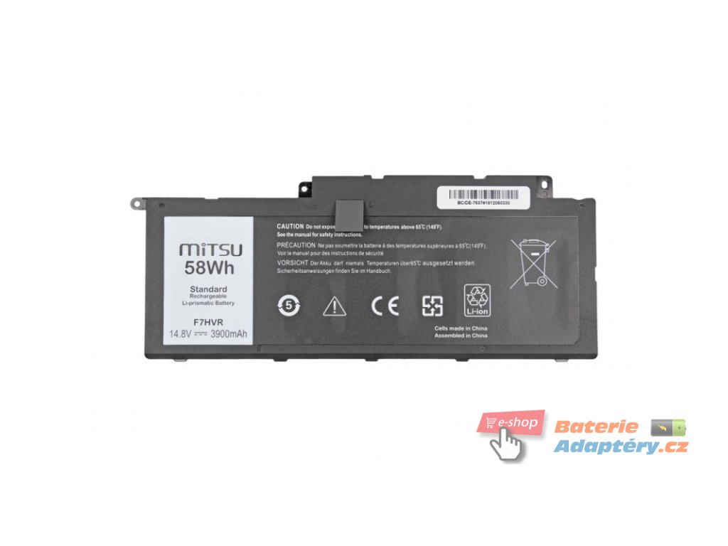 Nová, náhradní baterie značky Mitsu určená pro vybrané typy notebooků Asus. Jedná se o vhodnou alternativu za Váši nefunkční, originální baterii. Baterie Mitsu jsou určeny pro dané typy notebooku a plně nahrazují originální baterie. Spolehlivost Mitsu Battery dokládají získané certifikáty: CE, FCC, ROHS, které zaručují vysokou kvalitu a mizivou poruchovost. Baterie je vybavená zabezpečením proti hlubokému vybití a přebití. Part. number: 062VNH, 451-BBEN, 62VNH, F7HVR, G4YJM, T2T3J Vhodná pro: Dell Inspiron 15 (7537), Dell Inspiron 17 (7737), Dell Inspiron 17-7746, Dell Inspiron 7537, Dell Inspiron 7737Doplňkové parametry