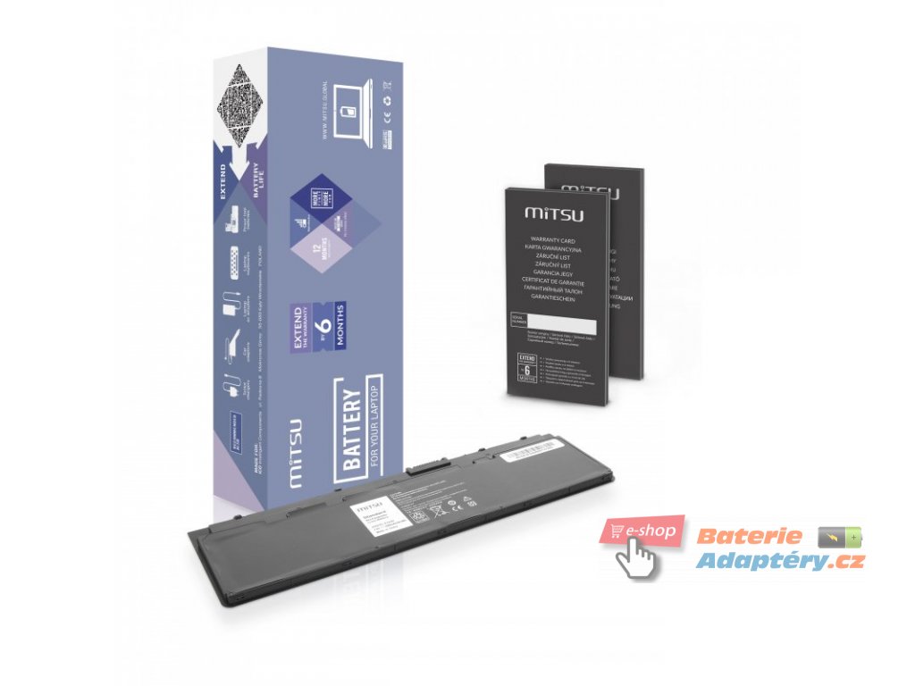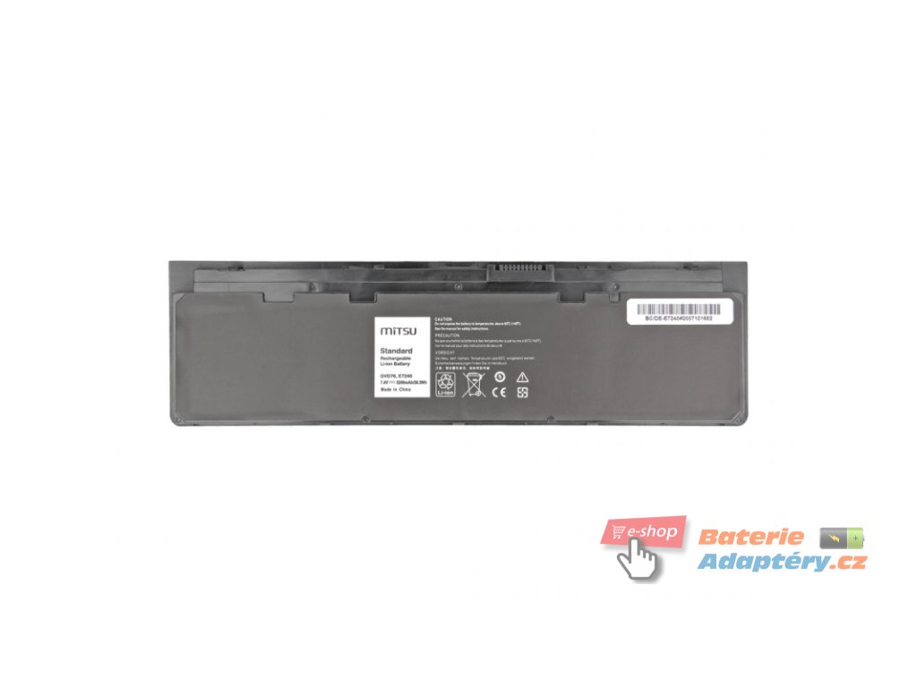 Nová, náhradní baterie značky Mitsu určená pro vybrané typy notebooků Dell. Jedná se o vhodnou alternativu za Váši nefunkční, originální baterii. Baterie Mitsu jsou určeny pro dané typy notebooku a plně nahrazují originální baterie. Spolehlivost Mitsu Battery dokládají získané certifikáty: CE, FCC, ROHS, které zaručují vysokou kvalitu a mizivou poruchovost. Baterie je vybavená zabezpečením proti hlubokému vybití a přebití. Part. number: 0W57CV, 3G33, 451-BBFW, 451-BBFX, GVD76, HJ8KP, J31N7, KWFFN, NCVF0, PT1, VFV59, W57CV, WD52H, X01, 451-BBFT, 09C26T, 0F3G33, 0GVD76, 0KKHY1, 0NCVF0, 0WG6RP, 0Y9HNT, 9C26T, F3G33, KKHY1, WG6RP, Y9HNT Vhodná pro: Dell Latitude E7240, Dell Latitude E7250, Dell Latitude 12 7000, Dell Latitude 12 7000-E7240, Dell Latitude E7240 12.5, Dell Latitude E7240 TOUCH, Dell Latitude E7240-1403, Dell Latitude E7240-1725, Dell Latitude E7240-1732, Dell Latitude E7240-1749, Dell Latitude E7240-1756, Dell Latitude E7240-1763, Dell Latitude E7240-1787, Dell Latitude E7240-2624, Dell Latitude E7240-2655, Dell Latitude E7240-2716, Dell Latitude E7240-4460, Dell Latitude E7240-5686, Dell Latitude E7240-6650, Dell Latitude E7240-6940, Dell Latitude E7240-7609, Dell Latitude E7240-7708, Dell Latitude E7240-8717, Dell Latitude E7240-8724, Dell Latitude E7240-8731, Dell Latitude E7240-8748, Dell Latitude E7240-9011, Dell Latitude E7240-9035, Dell Latitude E7240-9059, Dell Latitude 7240-2716Doplňkové parametry