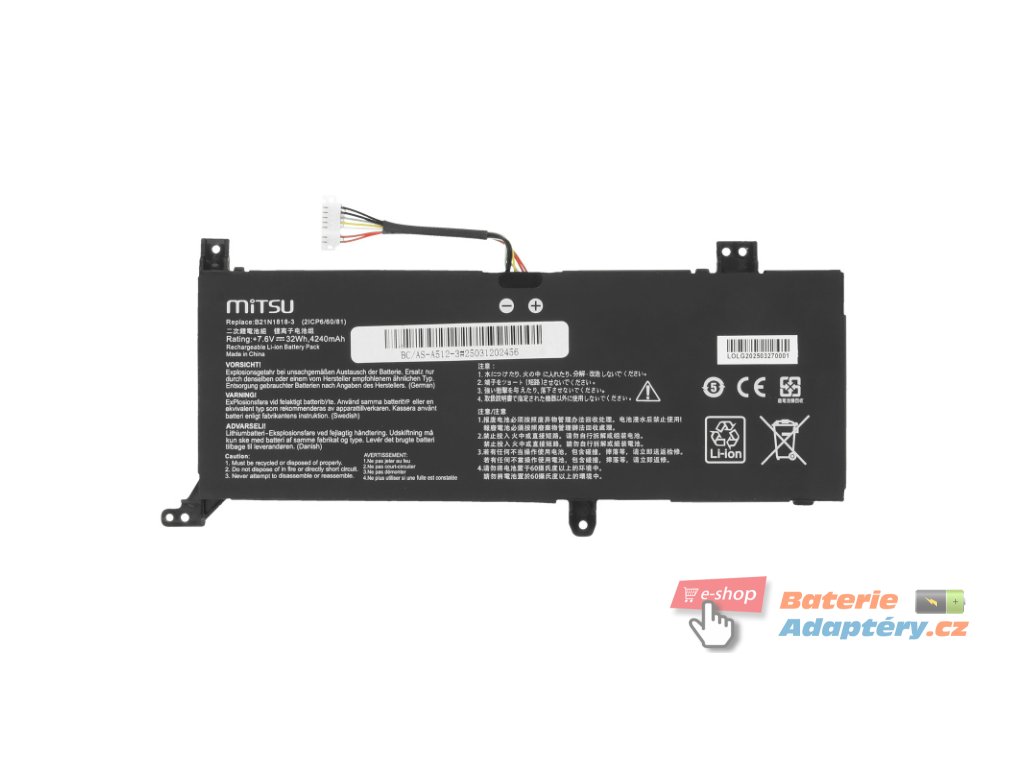 Part. number: 0B200-03280500, 0B200-03280600, 2ICP6/60/81, B21N1818-3, C21N1818 Vhodná pro: Asus A512DA, Asus X412FL, Asus A412F, Asus A412FA, Asus A412U, Asus A412UA, Asus X509JA, Asus Vivobook X509JA, Asus A512D, Asus R512F, Asus R512FL, Asus A412FA-EB646T, Asus A416J, Asus A416JA, Asus A416JP, Asus A512DA-BQ623T, Asus A512DA-BR751T, Asus A512DA-EJ1205T, Asus A512DA-EJ1210T, Asus A512DA-EJ1602T, Asus A512DA-EJ422T, Asus A512DA-EJ601T, Asus A512DA-EJ829T, Asus A512DA-EJ983T, Asus A516E, Asus A516EA, Asus A516EA-BQ1160, Asus A516EA-BQ1909W, Asus A516EA-BQ3334, Asus A516EA-BQ3335W, Asus A516EA-BQ3336, Asus A516EA-EJ1161, Asus A516EA-EJ1163, Asus A516EA-EJ1446, Asus A516EA-EJ1448, Asus A516EA-EJ1449, Asus A516J, Asus A516JA, Asus A516JA-BQ1022T, Asus A516JA-BQ1023T, Asus A516JA-BQ1918W, Asus A516JA-BQ1921, Asus A516JA-BQ2221T, Asus A516JA-BQ2252, Asus A516JA-BQ510T, Asus A516JA-EJ251T, Asus A516M, Asus A516MA, Asus A516MA-BQ169, Asus A516MA-BR204T, Asus A516MA-EJ206T, Asus A516MA-EJ889, Asus A516MA-EJ890, Asus D515D, Asus D515DA, Asus D515DA-BQ338T, Asus D515DA-BR599T, Asus D515DA-BR638T, Asus D515DA-EJ1166T, Asus D515DA-EJ1291W, Asus D515DA-EJ1396W, Asus D515DA-EJ1545W, Asus D515DA-EJ234T, Asus D515DA-EJ360T, Asus D515DA-EJ820T, Asus F412D, Asus F412DA, Asus F412DK, Asus F412F, Asus F412FA, Asus F412FJ, Asus F412FL, Asus F412U, Asus F412UA, Asus F412UB, Asus F412UF, Asus M415D, Asus M415DA, Asus M515D, Asus M515DA, Asus M515DA-BQ204T, Asus M515DA-BQ208T, Asus M515DA-BQ361T, Asus M515DA-BQ629T, Asus M515DA-BR382T, Asus M515DA-EJ229T, Asus M515U, Asus M515UA, Asus M515UA-BQ095T, Asus M515UA-BQ154T, Asus M515UA-BQ171T, Asus M515UA-BQ361T, Asus M515UA-BQ584W, Asus M515UA-EB72, Asus M515UA-EJ287T, Asus M515UA-EJ457T, Asus M515UA-EJ497W, Asus M515UA-EJ512TS, Asus P1412CEA, Asus P1412CEA-EB0373XA, Asus P1412CEA-EK0030W, Asus P1412CEA-EK0065X, Asus P1412CEA-EK0081W, Asus P1412CEA-EK0147X, Asus P1412CEA-EK0152W, Asus P1412CEA-EK0153W, Asus P1412CEA-EK0165, Asus P1412CEA-EK3420W, Asus P1412CEA-XS51, Asus P1412CKA, Asus P1412CKA-EB093XA, Asus P1500CEA, Asus P1500CEA-BQ0492XA, Asus P1500CEA-BQ270R, Asus P1500CEA-BR271R, Asus P1500CENS, Asus P1500CENS-BQ0016X, Asus P1500CENS-BQ1135R, Asus P1500CENS-BQ755R, Asus P1500CENS-EJ0008X, Asus P1500CENS-EJ0455X, Asus P1500CENS-EJ1347RA, Asus P1500CENS-EJ1475R, Asus P1500CENS-EJ827X, Asus P1500CJA, Asus P1500CJA-BQ646R, Asus P1500CJA-BQ648R, Asus P1500CJA-BQ650R, Asus P1500CJA-BR597R, Asus P1500CMNS, Asus P1500CMNS-BQ561RA, Asus P1500CMNS-EJ737XA, Asus P3400F, Asus P3400FA, Asus P3400FA-EB057R, Asus P3400FA-EB067R, Asus R415J, Asus R415JA, Asus R424D, Asus R424DA, Asus R424F, Asus R424FA, Asus S412D, Asus S412DA, Asus S412DK, Asus S412F, Asus S412FA, Asus S412FJ, Asus S412U, Asus S412UA, Asus S505J, Asus S505JA, Asus S515J, Asus S515JA, Asus X412D, Asus X412DA, Asus X412DK, Asus X412F, Asus X412FA, Asus X412FA-EB019T, Asus X412FA-EB021T, Asus X412FA-EB687T, Asus X412FA-EB720T, Asus X412FJ, Asus X412FJ-EB022T, Asus X412FJ-EB023T, Asus X412FL-EB124T, Asus X412FL-EB151T, Asus X412U, Asus X412UA, Asus X412UA-BV156T, Asus X412UA-EK033T, Asus X412UA-EK038T, Asus X412UA-EK266T, Asus X412UB, Asus X412UF, Asus X415D, Asus X415DA, Asus X415J, Asus X415JA, Asus X415JA-BV012A, Asus X415JA-BV164T, Asus X415JA-EB110T, Asus X415JA-EB240T, Asus X415JA-EB498T, Asus X415JA-EB499T, Asus X415JA-EB664T, Asus X415JA-EB952T, Asus X415JA-EB955, Asus X415JA-EK002T, Asus X415JA-EK031T, Asus X415JA-EK057T, Asus X415JA-EK085T, Asus X415JA-EK1014, Asus X415JA-EK1654, Asus X415JA-EK465T, Asus X415JF, Asus X415JP, Asus X415M, Asus X415MA, Asus X515D, Asus X515DA, Asus X515FA, Asus X515FA-EJ105W, Asus X515K, Asus X515KA, Asus X515KA-BQ146W, Asus X515KA-BR081W, Asus X515KA-EJ006, Asus X515KA-EJ006-W11, Asus X515KA-EJ016TS, Asus X515KA-EJ054W, Asus X515KA-EJ055W, Asus X515KA-EJ058, Asus X515KA-EJ217, Asus X515M, Asus X515MA, Asus X515MA-EJ680WS, Asus X515U, Asus X515UA, Asus VivoBook 15 D515D, Asus VivoBook 15 D515DA, Asus VivoBook 15 D515DA-BQ1127T, Asus VivoBook 15 D515DA-BQ299T, Asus VivoBook 15 D515DA-BQ349T, Asus VivoBook 15 D515DA-BQ418T, Asus VivoBook 15 D515DA-BQ708, Asus VivoBook 15 D515DA-EJ1241T, Asus VivoBook 15 D515DA-EJ1291W, Asus VivoBook 15 D515DA-EJ1325W, Asus VivoBook 15 D515U, Asus VivoBook 15 D515UA, Asus VivoBook 15 D515UA-BQ004T, Asus VivoBook 15 D515UA-BQ032T, Asus VivoBook 15 D515UA-EJ043T, Asus VivoBook 15 D515UA-EJ045T, Asus VivoBook 15 D515UA-EJ082T, Asus VivoBook 15 D515UA-EJ186T, Asus VivoBook 15 X515D, Asus VivoBook 15 X515DA, Asus VivoBook 15 X515J, Asus VivoBook 15 X515JF, Asus VivoBook 15 X515JP, Asus VivoBook 15 X515JP-EJ009T, Asus VivoBook 15 X515M, Asus VivoBook 15 X515MA, Asus VivoBook 15 X515MA-BQ398T, Asus VivoBook 15 X515MA-EJ493W, Asus VivoBook 15 X515MA-EJ782W, Asus VivoBook 15 X515U, Asus VivoBook 15 X515UA, Asus VivoBook 14 A416J, Asus VivoBook 14 A416JA, Asus VivoBook 14 A416JA-BV311TS, Asus VivoBook 14 A416JA-EB1185, Asus VivoBook 14 A416JA-EB744T, Asus VivoBook 14 A416JA-EK501TS, Asus VivoBook 14 A416JA-EK502TS, Asus VivoBook 14 A416JA-FHD321, Asus VivoBook 14 A416JA-FHD351, Asus VivoBook 14 A416JP, Asus VivoBook 14 A416JP-EK5121TS, Asus VivoBook 14 A416JP-EK5122, Asus VivoBook 14 A416JP-EK5122TS, Asus VivoBook 14 A416JP-FHD351, Asus VivoBook 14 A416JP-VIPS551, Asus VivoBook 14 F412D, Asus VivoBook 14 F412DA, Asus VivoBook 14 F412DA-EK080T, Asus VivoBook 14 F412DA-EK246T, Asus VivoBook 14 F412DA-EK359T, Asus VivoBook 14 F412DA-EK493T, Asus VivoBook 14 F412DA-IB31, Asus VivoBook 14 F412DA-IB51, Asus VivoBook 14 F412DK, Asus VivoBook 14 F412DK-EK049T, Asus VivoBook 14 F412DK-EK054T, Asus VivoBook 14 F412F, Asus VivoBook 14 F412FA, Asus VivoBook 14 F412FA-EB019T, Asus VivoBook 14 F412FA-EB025T, Asus VivoBook 14 F412FA-EB089T, Asus VivoBook 14 F412FA-EB133T, Asus VivoBook 14 F412FA-EB134T, Asus VivoBook 14 F412FJ, Asus VivoBook 14 F412FJ-EB084T, Asus VivoBook 14 F412FJ-EB118T, Asus VivoBook 14 F412FJ-EB119T, Asus VivoBook 14 F412FL, Asus VivoBook 14 F