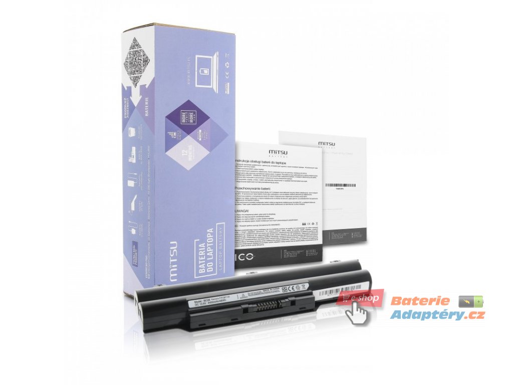 Nová, náhradní baterie značky Mitsu určená pro vybrané typy notebooků Fujitsu. Jedná se o vhodnou alternativu za Váši nefunkční, originální baterii. Baterie Mitsu jsou určeny pro dané typy notebooku a plně nahrazují originální baterie. Spolehlivost Mitsu Battery dokládají získané certifikáty: CE, FCC, ROHS, které zaručují vysokou kvalitu a mizivou poruchovost. Baterie je vybavená zabezpečením proti hlubokému vybití a přebití. Part. number: CP293550-01, CP458102-01, CP470833-XX, FMVNBP146, FMVNBP177, FMVNBP178, FMVNBP198, FMVNBP199, FPCBP145, FPCBP145AP, FPCBP218, FPCBP218AP, FPCBP219, FPCBP219AP, FPCBP220, FPCBP220AP, FPCBP238AP, FPCBP281, FPCBP281AP, FPCBP282, FPCBP282-K, FPCBP282AP, FPCBP283AP, FPCBP325-K, S26391-F795-L300, S26391-F956-L100, S26391-F956-L200 Vhodná pro: Fujitsu FMV-Biblo MG/G70, Fujitsu FMV-Biblo MG/G75, Fujitsu FMV-Biblo MG50S, Fujitsu FMV-Biblo MG50SN, Fujitsu FMV-Biblo MG50T, Fujitsu FMV-Biblo MG50U, Fujitsu FMV-Biblo MG50U/V, Fujitsu FMV-Biblo MG50W, Fujitsu FMV-Biblo MG55S, Fujitsu FMV-Biblo MG55SN, Fujitsu FMV-Biblo MG55T, Fujitsu FMV-Biblo MG55U, Fujitsu FMV-Biblo MG57SN, Fujitsu FMV-Biblo MG70S/T, Fujitsu FMV-Biblo MG70SN, Fujitsu FMV-Biblo MG75S, Fujitsu FMV-Biblo MG75SN, Fujitsu FMV-Biblo MG75T, Fujitsu FMV-Biblo MG75U, Fujitsu FMV-Biblo R/E50, Fujitsu FMV-Biblo R/E70, Fujitsu FMV-Biblo S/C50, Fujitsu FMV-Biblo S/D50, Fujitsu FMV-Biblo S/G50, Fujitsu Lifebook A561/D, Fujitsu Lifebook AH52/DNA, Fujitsu Lifebook AH52/GA, Fujitsu Lifebook AH54/H, Fujitsu Lifebook AH56/CN, Fujitsu Lifebook AH56/DN, Fujitsu Lifebook AH56/H, Fujitsu Lifebook AH572, Fujitsu Lifebook AH77/CN, Fujitsu Lifebook AH77/DN, Fujitsu Lifebook AH77/G, Fujitsu Lifebook AH78/HA, Fujitsu Lifebook E741/D, Fujitsu Lifebook E751, Fujitsu Lifebook E751/C, Fujitsu Lifebook E752, Fujitsu Lifebook E782, Fujitsu Lifebook E8310, Fujitsu Lifebook FMV-R8290, Fujitsu Lifebook FMV-S8220, Fujitsu Lifebook FMV-S8225, Fujitsu Lifebook FMV-S8250, Fujitsu Lifebook FMV-S8490, Fujitsu Lifebook L1010, Fujitsu Lifebook LH700, Fujitsu Lifebook LH772, Fujitsu Lifebook P701, Fujitsu Lifebook P701/C, Fujitsu Lifebook P702, Fujitsu Lifebook P770, Fujitsu Lifebook P771, Fujitsu Lifebook P771A, Fujitsu Lifebook P772, Fujitsu Lifebook P8110, Fujitsu Lifebook PH701, Fujitsu Lifebook PH702, Fujitsu Lifebook S2210, Fujitsu Lifebook S561, Fujitsu Lifebook S6310, Fujitsu Lifebook S6311, Fujitsu Lifebook S710, Fujitsu Lifebook S7110, Fujitsu Lifebook S7111, Fujitsu Lifebook S751, Fujitsu Lifebook S751/C, Fujitsu Lifebook S752, Fujitsu Lifebook S760, Fujitsu Lifebook S761, Fujitsu Lifebook S761/D, Fujitsu Lifebook S762, Fujitsu Lifebook S782, Fujitsu Lifebook S792, Fujitsu Lifebook SH560, Fujitsu Lifebook SH560/3A, Fujitsu Lifebook SH561, Fujitsu Lifebook SH572, Fujitsu Lifebook SH760, Fujitsu Lifebook SH760/5A, Fujitsu Lifebook SH761, Fujitsu Lifebook SH762, Fujitsu Lifebook SH762/E, Fujitsu Lifebook SH771, Fujitsu Lifebook SH772, Fujitsu Lifebook SH782, Fujitsu Lifebook SH792, Fujitsu Lifebook T580 TABLET PC, Fujitsu Lifebook TH550Doplňkové parametry