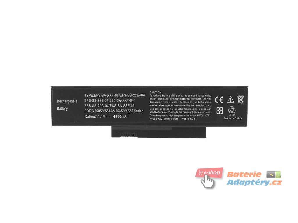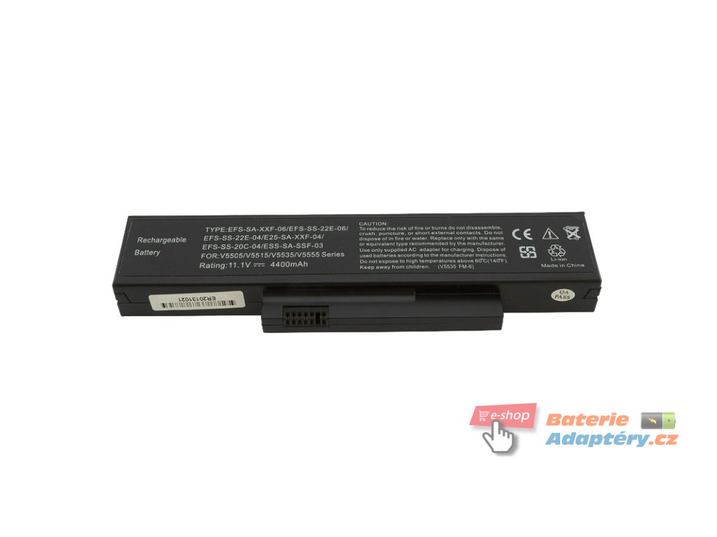 Nová, náhradní baterie značky Mitsu určená pro výbrané typy notebooků Fujitsu. Jedná se o vhodnou alternativu za Váši nefunkční, originální baterii. Baterie Mitsu jsou určeny pro dané typy notebooku a plně nahrazují originálni baterie. Spolehlivost Mitsu Battery dokládají získané certifikáty: CE, FCC, ROHS, které zaručují vysokou kvalitu a mizivou poruchovost. Baterie je vybavená zabezpečením proti hlubokému vybití a přebití. Part. number: S26391-F6120-L470, SMP-EFS-SS-22E-06, SDI-HFS-SS-22F-06, ESS-SA-SSF-O3, FOX-E25-SA-XXF-04, FOX-EFS-SA-22F-06, FOX-EFS-SA-XXF-04, FOX-EFS-SA-XXF-O6, SMP-EFS-SS-20C-04, SMP-EFS-SS-22E-04, SMP-EFS-SS-22E-O6, SMP-EFS-SS-24B-06, SMP-EFS-SS-26C-06 Vhodná pro: Fujitsu Esprimo mobile V5515, Fujitsu Esprimo mobile V5535, Fujitsu Esprimo mobile V5555, Fujitsu Esprimo mobile V6515Doplňkové parametry