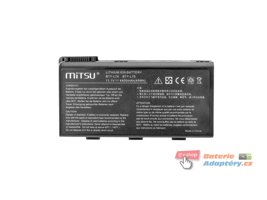 Nová, náhradní baterie značky Mitsu určená pro vybrané typy notebooků MSI. Jedná se o vhodnou alternativu za Váši nefunkční, originální baterii. Baterie Mitsu jsou určeny pro dané typy notebooku a plně nahrazují originální baterie. Spolehlivost Mitsu Battery dokládají získané certifikáty: CE, FCC, ROHS, které zaručují vysokou kvalitu a mizivou poruchovost. Baterie je vybavená zabezpečením proti hlubokému vybití a přebití. Part. number: BTY-L74, BTY-L75, 91NMS17LD4SU1, 91NMS17LF6SU1, 957-173XXP-101, 957-173XXP-102, MS-1682, S9N-2062200-CE1, S9N2082200CE Vhodná pro: MSI A5000, MSI A6000, MSI A6005, MSI A6200, MSI A6203, MSI A6205, MSI A7005, MSI A7200, MSI CR500, MSI CR500X, MSI CR600, MSI CR600X, MSI CR610, MSI CR610X, MSI CR620, MSI CR630, MSI CR630X, MSI CR700, MSI CR700X, MSI CR720, MSI CR720X, MSI CX500, MSI CX500X, MSI CX600, MSI CX600X, MSI CX605, MSI CX605X, MSI CX610, MSI CX610X, MSI CX620, MSI CX620X, MSI CX623, MSI CX623X, MSI CX630, MSI CX700, MSI CX700X, MSI CX705X, MSI CX720, MSI CX720X, MSI GE700, MSI CX705MX, MSI CX620 3D, MSI CR600-001US, MSI CR600-013US, MSI CR600-017US, MSI CR600-234US, MSI CR610-001NL, MSI CR610-003HU, MSI CR610-005, MSI CR610-006, MSI CR610-006NE, MSI CR610-007PL, MSI CR610-009PL, MSI CR610-011IT, MSI CR610-013, MSI CR610-013UK, MSI CR610-016UK, MSI CR610-026XCZ, MSI CR610-027XSK, MSI CR610-028X, MSI CR610-028XHU, MSI CR610-031LRU, MSI CR610-033, MSI CR610-050BE, MSI CR610-051, MSI CR610-058PL, MSI CR610-059PL, MSI CR610-060XPL, MSI CR610-061XPL, MSI CR610-062NL, MSI CR610-063BE, MSI CR610-070X, MSI CR610-070XEU, MSI CR610-075AR, MSI CR610-081XHU, MSI CR610-091XBL, MSI CR610-092XAR, MSI CR610-097RU, MSI CR610-0W1XBL, MSI CR610-0W2XEU, MSI CR610-M1005Q, MSI CR610-M1023W7P, MSI CR610-M1025W7P, MSI CR610-M1226W7P, MSI CR610-M320, MSI CR610-M3243W7P, MSI CR610C61M32, MSI CR610MS-3801, MSI CR610MS-6890, MSI CR610MS-6891, MSI CR630-002XUA, MSI CR630-009, MSI CR630-010, MSI CR630-010X, MSI CR630-015CZ, MSI CR630-018NL, MSI CR630-020NE, MSI CR630-022XIT, MSI CR630-024XCZ, MSI CR630-025XHU, MSI CR630-034X, MSI CR630-042PL, MSI CR630-043XPL, MSI CR630-044PL, MSI CR630-056, MSI CR630-088XYU, MSI CR630-BLU-RAY, MSI CR630-P3443W7P, MSI CR630-V1216FD, MSI CR630-V1225FD, MSI CR630-V1225W7P, MSI CR700-012US, MSI CR700-013NL, MSI CR700-017CA, MSI CR700-024, MSI CR700-034, MSI CR700-038PL, MSI CR700-047US, MSI CR700-060X, MSI CR700-063X, MSI CR700-068XEU, MSI CR700-070XSK, MSI CR700-071XHU, MSI CR700-075, MSI CR700-085FR, MSI CR700-099NL, MSI CR700-200BE, MSI CR700-202XEU, MSI CR700-204BE, MSI CR700-205NE, MSI CR700-206RU, MSI CR700-211, MSI CR700-211FR, MSI CR700-220XCZ, MSI CR700-221XSK, MSI CR700-2226, MSI CR700-223L, MSI CR700-223LRU, MSI CR700-231, MSI CR700-T3035FD, MSI CR700-T6600, MSI CR700MS-1734, MSI CR700X-029EU, MSI CX500-004RU, MSI CX500-006, MSI CX500-010TR, MSI CX500-016RU, MSI CX500-026L, MSI CX500-034, MSI CX500-037LRU, MSI CX500-296BE, MSI CX500-299, MSI CX500-299XEU, MSI CX500-402XHU, MSI CX500-403XBL, MSI CX500-404X, MSI CX500-406TR, MSI CX500-408IT, MSI CX500-414, MSI CX500-414IT, MSI CX500-416XEU, MSI CX500-419XHU, MSI CX500-427LUA, MSI CX500-428LUA, MSI CX500-429LUA, MSI CX500-430LUA, MSI CX500-431UA, MSI CX500-432UA, MSI CX500-441XCN, MSI CX500-444NL, MSI CX500-457, MSI CX500-457RU, MSI CX500-472, MSI CX500-472RU, MSI CX500-476L, MSI CX500-490L, MSI CX500-492, MSI CX500-497, MSI CX500-498, MSI CX500-498RU, MSI CX500-499BE, MSI CX500-604XBL, MSI CX500-605XEU, MSI CX500-607SK, MSI CX500-T4543W7P, MSI CX500-T6602G50SX, MSI CX500DX-638SK, MSI CX500DX-639XEU, MSI CX600-049US, MSI CX600-064UK, MSI CX600-T4343W7P, MSI CX605M, MSI CX610-050BE, MSI CX620-008XEU, MSI CX620-013XEU, MSI CX620-019NE, MSI CX620-035AU, MSI CX620-061, MSI CX620-223BE, MSI CX620MX, MSI CX623-005NL, MSI CX623-006BE, MSI CX623-007NE, MSI CX623-01, MSI CX623-014XEU, MSI CX623-015CZ, MSI CX623-017XHU, MSI CX623-018XBL, MSI CX623-019X, MSI CX623-019XEU, MSI CX623-02, MSI CX623-020CZ, MSI CX623-021SK, MSI CX623-022XHU, MSI CX623-023NL, MSI CX623-025, MSI CX623-025NE, MSI CX623-028BL, MSI CX623-033, MSI CX623-033FR, MSI CX623-034IT, MSI CX623-043, MSI CX623-048XUA, MSI CX623-049NL, MSI CX623-051NE, MSI CX623-052CZ, MSI CX623-054XEU, MSI CX623-055XHU, MSI CX623-056, MSI CX623-058XBY, MSI CX623-073CZ, MSI CX623-076XHU, MSI CX623-079PL, MSI CX623-079XPL, MSI CX623-081NL, MSI CX623-084NL, MSI CX623-085BE, MSI CX623-087X, MSI CX623-087XEU, MSI CX623-088X, MSI CX623-088XHU, MSI CX623-096UK, MSI CX623-168A, MSI CX623-201, MSI CX623-219, MSI CX623-AS, MSI CX623-I3743W7P, MSI CX623-I5443, MSI CX623-I5443W7P, MSI CX623-I5647W7P, MSI CX623-P6033W7PDoplňkové parametry