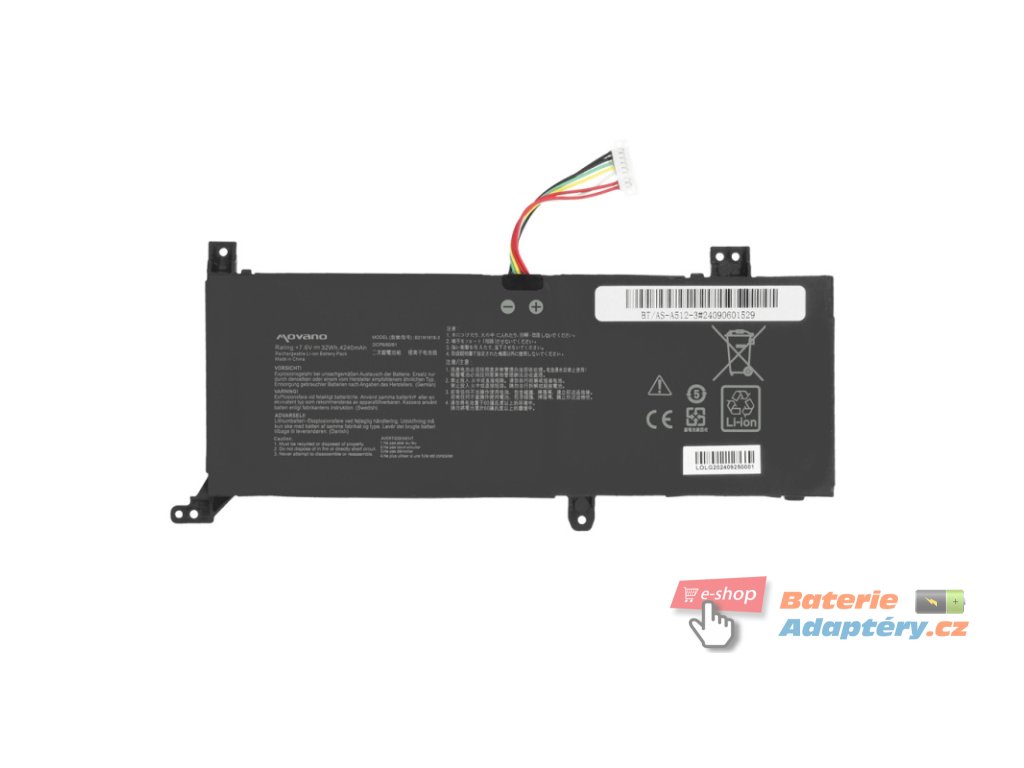Part. number: 0B200-03280500, 0B200-03280600, 2ICP6/60/81, B21N1818-3, C21N1818 Vhodná pro: Asus A512DA, Asus X412FL, Asus A412F, Asus A412FA, Asus A412U, Asus A412UA, Asus X509JA, Asus Vivobook X509JA, Asus A512D, Asus R512F, Asus R512FL, Asus A412FA-EB646T, Asus A416J, Asus A416JA, Asus A416JP, Asus A512DA-BQ623T, Asus A512DA-BR751T, Asus A512DA-EJ1205T, Asus A512DA-EJ1210T, Asus A512DA-EJ1602T, Asus A512DA-EJ422T, Asus A512DA-EJ601T, Asus A512DA-EJ829T, Asus A512DA-EJ983T, Asus A516E, Asus A516EA, Asus A516EA-BQ1160, Asus A516EA-BQ1909W, Asus A516EA-BQ3334, Asus A516EA-BQ3335W, Asus A516EA-BQ3336, Asus A516EA-EJ1161, Asus A516EA-EJ1163, Asus A516EA-EJ1446, Asus A516EA-EJ1448, Asus A516EA-EJ1449, Asus A516J, Asus A516JA, Asus A516JA-BQ1022T, Asus A516JA-BQ1023T, Asus A516JA-BQ1918W, Asus A516JA-BQ1921, Asus A516JA-BQ2221T, Asus A516JA-BQ2252, Asus A516JA-BQ510T, Asus A516JA-EJ251T, Asus A516M, Asus A516MA, Asus A516MA-BQ169, Asus A516MA-BR204T, Asus A516MA-EJ206T, Asus A516MA-EJ889, Asus A516MA-EJ890, Asus D515D, Asus D515DA, Asus D515DA-BQ338T, Asus D515DA-BR599T, Asus D515DA-BR638T, Asus D515DA-EJ1166T, Asus D515DA-EJ1291W, Asus D515DA-EJ1396W, Asus D515DA-EJ1545W, Asus D515DA-EJ234T, Asus D515DA-EJ360T, Asus D515DA-EJ820T, Asus F412D, Asus F412DA, Asus F412DK, Asus F412F, Asus F412FA, Asus F412FJ, Asus F412FL, Asus F412U, Asus F412UA, Asus F412UB, Asus F412UF, Asus M415D, Asus M415DA, Asus M515D, Asus M515DA, Asus M515DA-BQ204T, Asus M515DA-BQ208T, Asus M515DA-BQ361T, Asus M515DA-BQ629T, Asus M515DA-BR382T, Asus M515DA-EJ229T, Asus M515U, Asus M515UA, Asus M515UA-BQ095T, Asus M515UA-BQ154T, Asus M515UA-BQ171T, Asus M515UA-BQ361T, Asus M515UA-BQ584W, Asus M515UA-EB72, Asus M515UA-EJ287T, Asus M515UA-EJ457T, Asus M515UA-EJ497W, Asus M515UA-EJ512TS, Asus P1412CEA, Asus P1412CEA-EB0373XA, Asus P1412CEA-EK0030W, Asus P1412CEA-EK0065X, Asus P1412CEA-EK0081W, Asus P1412CEA-EK0147X, Asus P1412CEA-EK0152W, Asus P1412CEA-EK0153W, Asus P1412CEA-EK0165, Asus P1412CEA-EK3420W, Asus P1412CEA-XS51, Asus P1412CKA, Asus P1412CKA-EB093XA, Asus P1500CEA, Asus P1500CEA-BQ0492XA, Asus P1500CEA-BQ270R, Asus P1500CEA-BR271R, Asus P1500CENS, Asus P1500CENS-BQ0016X, Asus P1500CENS-BQ1135R, Asus P1500CENS-BQ755R, Asus P1500CENS-EJ0008X, Asus P1500CENS-EJ0455X, Asus P1500CENS-EJ1347RA, Asus P1500CENS-EJ1475R, Asus P1500CENS-EJ827X, Asus P1500CJA, Asus P1500CJA-BQ646R, Asus P1500CJA-BQ648R, Asus P1500CJA-BQ650R, Asus P1500CJA-BR597R, Asus P1500CMNS, Asus P1500CMNS-BQ561RA, Asus P1500CMNS-EJ737XA, Asus P3400F, Asus P3400FA, Asus P3400FA-EB057R, Asus P3400FA-EB067R, Asus R415J, Asus R415JA, Asus R424D, Asus R424DA, Asus R424F, Asus R424FA, Asus S412D, Asus S412DA, Asus S412DK, Asus S412F, Asus S412FA, Asus S412FJ, Asus S412U, Asus S412UA, Asus S505J, Asus S505JA, Asus S515J, Asus S515JA, Asus X412D, Asus X412DA, Asus X412DK, Asus X412F, Asus X412FA, Asus X412FA-EB019T, Asus X412FA-EB021T, Asus X412FA-EB687T, Asus X412FA-EB720T, Asus X412FJ, Asus X412FJ-EB022T, Asus X412FJ-EB023T, Asus X412FL-EB124T, Asus X412FL-EB151T, Asus X412U, Asus X412UA, Asus X412UA-BV156T, Asus X412UA-EK033T, Asus X412UA-EK038T, Asus X412UA-EK266T, Asus X412UB, Asus X412UF, Asus X415D, Asus X415DA, Asus X415J, Asus X415JA, Asus X415JA-BV012A, Asus X415JA-BV164T, Asus X415JA-EB110T, Asus X415JA-EB240T, Asus X415JA-EB498T, Asus X415JA-EB499T, Asus X415JA-EB664T, Asus X415JA-EB952T, Asus X415JA-EB955, Asus X415JA-EK002T, Asus X415JA-EK031T, Asus X415JA-EK057T, Asus X415JA-EK085T, Asus X415JA-EK1014, Asus X415JA-EK1654, Asus X415JA-EK465T, Asus X415JF, Asus X415JP, Asus X415M, Asus X415MA, Asus X515D, Asus X515DA, Asus X515FA, Asus X515FA-EJ105W, Asus X515K, Asus X515KA, Asus X515KA-BQ146W, Asus X515KA-BR081W, Asus X515KA-EJ006, Asus X515KA-EJ006-W11, Asus X515KA-EJ016TS, Asus X515KA-EJ054W, Asus X515KA-EJ055W, Asus X515KA-EJ058, Asus X515KA-EJ217, Asus X515M, Asus X515MA, Asus X515MA-EJ680WS, Asus X515U, Asus X515UA, Asus VivoBook 15 D515D, Asus VivoBook 15 D515DA, Asus VivoBook 15 D515DA-BQ1127T, Asus VivoBook 15 D515DA-BQ299T, Asus VivoBook 15 D515DA-BQ349T, Asus VivoBook 15 D515DA-BQ418T, Asus VivoBook 15 D515DA-BQ708, Asus VivoBook 15 D515DA-EJ1241T, Asus VivoBook 15 D515DA-EJ1291W, Asus VivoBook 15 D515DA-EJ1325W, Asus VivoBook 15 D515U, Asus VivoBook 15 D515UA, Asus VivoBook 15 D515UA-BQ004T, Asus VivoBook 15 D515UA-BQ032T, Asus VivoBook 15 D515UA-EJ043T, Asus VivoBook 15 D515UA-EJ045T, Asus VivoBook 15 D515UA-EJ082T, Asus VivoBook 15 D515UA-EJ186T, Asus VivoBook 15 X515D, Asus VivoBook 15 X515DA, Asus VivoBook 15 X515J, Asus VivoBook 15 X515JF, Asus VivoBook 15 X515JP, Asus VivoBook 15 X515JP-EJ009T, Asus VivoBook 15 X515M, Asus VivoBook 15 X515MA, Asus VivoBook 15 X515MA-BQ398T, Asus VivoBook 15 X515MA-EJ493W, Asus VivoBook 15 X515MA-EJ782W, Asus VivoBook 15 X515U, Asus VivoBook 15 X515UA, Asus VivoBook 14 A416J, Asus VivoBook 14 A416JA, Asus VivoBook 14 A416JA-BV311TS, Asus VivoBook 14 A416JA-EB1185, Asus VivoBook 14 A416JA-EB744T, Asus VivoBook 14 A416JA-EK501TS, Asus VivoBook 14 A416JA-EK502TS, Asus VivoBook 14 A416JA-FHD321, Asus VivoBook 14 A416JA-FHD351, Asus VivoBook 14 A416JP, Asus VivoBook 14 A416JP-EK5121TS, Asus VivoBook 14 A416JP-EK5122, Asus VivoBook 14 A416JP-EK5122TS, Asus VivoBook 14 A416JP-FHD351, Asus VivoBook 14 A416JP-VIPS551, Asus VivoBook 14 F412D, Asus VivoBook 14 F412DA, Asus VivoBook 14 F412DA-EK080T, Asus VivoBook 14 F412DA-EK246T, Asus VivoBook 14 F412DA-EK359T, Asus VivoBook 14 F412DA-EK493T, Asus VivoBook 14 F412DA-IB31, Asus VivoBook 14 F412DA-IB51, Asus VivoBook 14 F412DK, Asus VivoBook 14 F412DK-EK049T, Asus VivoBook 14 F412DK-EK054T, Asus VivoBook 14 F412F, Asus VivoBook 14 F412FA, Asus VivoBook 14 F412FA-EB019T, Asus VivoBook 14 F412FA-EB025T, Asus VivoBook 14 F412FA-EB089T, Asus VivoBook 14 F412FA-EB133T, Asus VivoBook 14 F412FA-EB134T, Asus VivoBook 14 F412FJ, Asus VivoBook 14 F412FJ-EB084T, Asus VivoBook 14 F412FJ-EB118T, Asus VivoBook 14 F412FJ-EB119T, Asus VivoBook 14 F412FL, Asus VivoBook 14 F