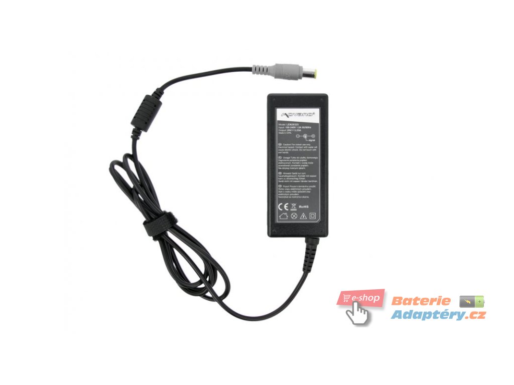 Nový, náhradní adaptér značky Movano s certifikátem kvality CE, ROHS určený pro notebooky IBM/Lenovo. Hodnoty adaptéru na výstupu (OUTPUT): 20 V , 3.25 A (65 W) Rozměr konektoru: Vnější průměr 8.0 mm, Vnitřní průměr 5.5 mm , délka 11 mm , PIN Jedná se o vhodnou alternativu za Váš nefunkční, originální adaptér. Adaptéry Movano jsou určeny pro dané typy notebooku a plně nahrazují originálni adaptéry. Adaptér je vybaven feritovým filtrem a zabezpečením vysoké kvality proti přepětí, přehřání, přetížení a probíjení. Napájecí kabel je součástí balení. Part. number: 92P1157, 0Y7696, 40Y7696, 40Y7697, 40Y7698, 40Y7699, 40Y7700, 40Y7701, 40Y7702, 40Y7703, 40Y7704, 40Y7705, 40Y7706, 40Y7707, 40Y7708, 40Y7709, 40Y7710, 40Y7711, 42T5282, 42T5283, 45N0119, 92P1211, 92P1212, 92P1214, ADLX65NCT2A, ADLX65NCT3A, PA-1650-16I Vhodná pro: Lenovo ThinkPad R500, IBM ThinkPad R60, IBM ThinkPad R60e, IBM ThinkPad R61, Lenovo ThinkPad R61, Lenovo ThinkPad R61e, Lenovo ThinkPad SL500, Lenovo ThinkPad T500, IBM ThinkPad T60, IBM ThinkPad T60p, IBM ThinkPad T61, IBM ThinkPad Z61e, IBM ThinkPad Z61m, Lenovo Thinkpad SL400, Lenovo 3000 C200, Lenovo 3000 N100, Lenovo 3000 N200, Lenovo 3000 V100, Lenovo 3000 V200, Lenovo ThinkPad R400, IBM ThinkPad Z61t, IBM ThinkPad X60, IBM ThinkPad X60s, Lenovo ThinkPad X200, Lenovo ThinkPad X200s, Lenovo ThinkPad X201, Lenovo ThinkPad X201i, Lenovo ThinkPad X201s, Lenovo ThinkPad X300, Lenovo ThinkPad Edge 11, Lenovo ThinkPad Edge E10, Lenovo ThinkPad X100e, Lenovo ThinkPad X220, Lenovo ThinkPad Edge E120, Lenovo ThinkPad Edge E320, Lenovo ThinkPad Edge E325, Lenovo ThinkPad Edge 14, Lenovo ThinkPad Edge 15, Lenovo ThinkPad Edge E420, Lenovo Thinkpad Edge E425, Lenovo ThinkPad Edge E520, Lenovo Thinkpad Edge E525, Lenovo ThinkPad L410, Lenovo ThinkPad L412, Lenovo ThinkPad L420, Lenovo ThinkPad L421, Lenovo ThinkPad L510, Lenovo ThinkPad L512, Lenovo ThinkPad L520, Lenovo ThinkPad SL410, Lenovo ThinkPad SL510, Lenovo ThinkPad T410, Lenovo ThinkPad T410i, Lenovo ThinkPad T420, Lenovo ThinkPad T510, Lenovo ThinkPad T510i, Lenovo ThinkPad T520, Lenovo ThinkPad T520i, Lenovo ThinkPad X200 Tablet, Lenovo ThinkPad X220 Tablet, Lenovo ThinkPad Edge 13, Lenovo ThinkPad Edge E30, Lenovo ThinkPad T400s, Lenovo ThinkPad T410s, IBM ThinkPad X60 TABLET, IBM ThinkPad X61, IBM ThinkPad X61 TABLET, IBM ThinkPad X61S, IBM ThinkPad Z60M, Lenovo B590, Lenovo 3000 C100, Lenovo 3000 ESSENTIAL PORT REPLICATOR, Lenovo Thinkpad SL300, Lenovo Thinkpad SL410K, Lenovo Thinkpad T400 14" WIDE, Lenovo Thinkpad T410SI, Lenovo Thinkpad T420S, Lenovo Thinkpad T61, Lenovo Thinkpad T61P, Lenovo Thinkpad X1, Lenovo Thinkpad X121E, Lenovo Thinkpad X200T, Lenovo Thinkpad X201 TABLET, Lenovo Thinkpad X201T, Lenovo Thinkpad X220T TABLET, Lenovo Thinkpad X230, Lenovo Thinkpad X301, Lenovo Thinkpad X60 TABLET, Lenovo Thinkpad X61 TABLET, Lenovo ThinkPad Edge 12.5", Lenovo ThinkPad Edge E220S, Lenovo ThinkPad Edge E40, Lenovo ThinkPad Edge E420S, Lenovo ThinkPad Edge E50, Lenovo Thinkpad T430, Lenovo Thinkpad T430S, Lenovo Thinkpad X140E, Lenovo ThinkPad Edge E530, Lenovo ThinkPad Edge E535, Lenovo Thinkpad L530, Lenovo IdeaPad V490U, Lenovo Thinkpad R61I (Z MATRYCĄ 14.1" I 15.4"), Lenovo Thinkpad X131E, Lenovo Thinkpad X131E 3369, Lenovo Thinkpad X131E 3371, Lenovo Thinkpad T530 2434, Lenovo B590-59-362559, Lenovo V480, Lenovo Thinkpad L430 2464, Lenovo Thinkpad L512 2598, Lenovo Thinkpad L512 2599, Lenovo Thinkpad T430S 2352, Lenovo Thinkpad T430S 2354, Lenovo Thinkpad T430S 2356, Lenovo Thinkpad T430U 8614, Lenovo Thinkpad T530I 2429, Lenovo Thinkpad X200SI, Lenovo Thinkpad X201I TABLET, Lenovo Thinkpad X220 4287, Lenovo Thinkpad X220 4290, Lenovo Thinkpad X220 4291, Lenovo ThinkPad Edge 11”, Lenovo ThinkPad Edge 15.6”, Lenovo ThinkPad Edge E330, Lenovo ThinkPad Edge E330 3354, Lenovo ThinkPad Twist S230U, Lenovo ThinkPad Edge 15"Doplňkové parametry